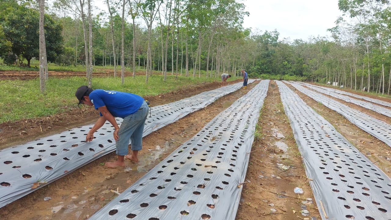 Lahan demplot atau lahan percontohan yang dijadikan sebagai tempat budidaya bawang merah dalam proses pelatihan ini merupakan lahan milik salah satu tokoh masyarakat yang bernama H. Sokhidin, beliau menyediakan lahan seluas 2000 m2 untuk mendukung program tersebut. Lahan ini diolah dan dirawat secara gotong royong oleh masyarakat setempat, dalam program pelatihan tersebut terdapat kurang lebih 10 orang yang secara aktif mengelola lahan dan melakukan perawatan terhadap bawang merah yang sudah ditanam.