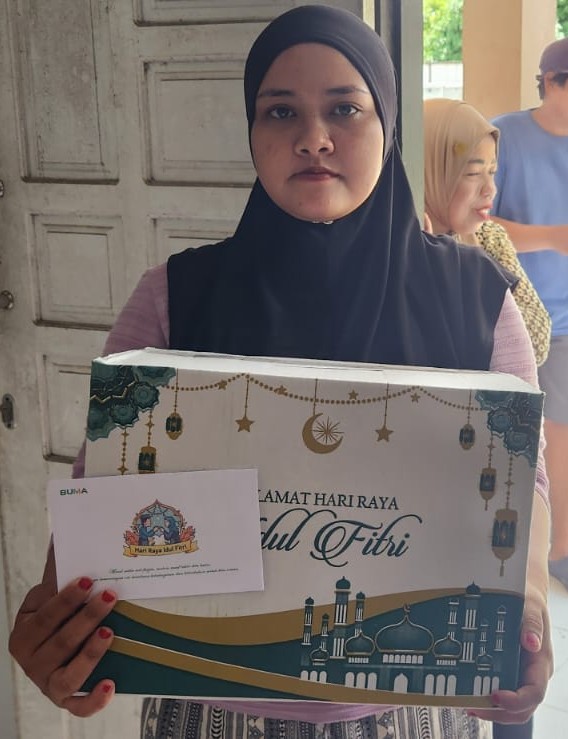 PT. BUMA memberikan bantuan berupa Parsel yang berisi kebutuhan pokok seperti gula, minuman sirup, hingga makanan ringan dalam kemasan kaleng, serta uang tunai dengan jumlah total mencapai 122 paket bantuan.